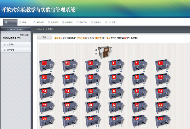 | 預約工位 | 預約現實實驗室的工位及設備,預約成功后前往實驗室做實驗。 |
