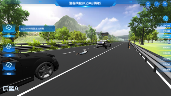 道路交通執(zhí)勤執(zhí)法虛擬仿真實驗:本虛擬仿真實驗系統(tǒng)通過三維動畫技術(shù),該項目通過模擬監(jiān)獄的真實環(huán)境,引導學生進行道路執(zhí)勤執(zhí)法過程的處理,使學生了解不同情況事故及車輛檢查工作內(nèi)容,掌握車輛事故、車輛檢查的應急處置及常規(guī)執(zhí)法處置機制與流程,具備迅速控制案件情況,維護駕駛員的安全與穩(wěn)定的能力。