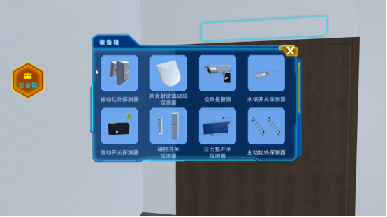 入侵報(bào)警虛擬仿真實(shí)驗(yàn):通過(guò)虛擬仿真形式還原一個(gè)真實(shí)入侵報(bào)警偵查全過(guò)程的真實(shí)場(chǎng)景及報(bào)警設(shè)備安裝流程,學(xué)生可選擇家庭、室外、辦公室三種情形安裝報(bào)警設(shè)備,進(jìn)入不同場(chǎng)景根據(jù)提示在不同位置安裝熱釋電紅外探測(cè)器、視頻報(bào)警器、水銀開(kāi)關(guān)檢測(cè)器、微動(dòng)開(kāi)關(guān)檢測(cè)器、位移式振動(dòng)探測(cè)器、壓力墊開(kāi)關(guān)探測(cè)器、主動(dòng)紅外檢測(cè)器、被動(dòng)紅外檢測(cè)器、多普勒超聲波探測(cè)器、金屬條斷裂開(kāi)關(guān)等設(shè)備,完成安裝須填寫(xiě)安裝說(shuō)明。