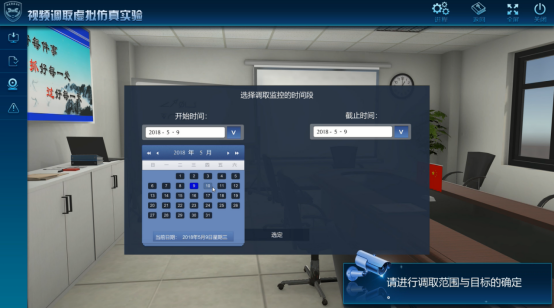 視頻調(diào)取保存實(shí)驗(yàn):該套系統(tǒng)主要通過(guò)虛擬仿真的形式模擬視頻圖像分析系統(tǒng),實(shí)驗(yàn)分為視頻調(diào)取前期準(zhǔn)備及監(jiān)控調(diào)取處理。視頻監(jiān)控調(diào)取首先通過(guò)對(duì)話(huà)形式,讓操作者了解案情,開(kāi)始調(diào)取準(zhǔn)備工作,實(shí)驗(yàn)可選取時(shí)間段、調(diào)取范圍的選擇、攜帶法律手續(xù)和視頻調(diào)取工具,填寫(xiě)意外情況對(duì)應(yīng)方案并制作視頻監(jiān)控點(diǎn)分布圖,學(xué)生可進(jìn)入監(jiān)控探頭庫(kù)編輯或刪除監(jiān)控探頭,進(jìn)入監(jiān)控對(duì)應(yīng)場(chǎng)景內(nèi)聯(lián)系資料持有者并出示法律文書(shū)對(duì)于不同情況采取不同調(diào)取方法,學(xué)生完成操作可填寫(xiě)視頻分析報(bào)告及視頻偵查報(bào)告。