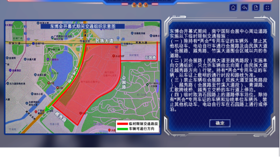 大型活動現(xiàn)場安全管控實驗:實驗通過虛擬仿真技術模擬對安全保衛(wèi)方案指定地點進行現(xiàn)場管控的過程。包括管控過程中的具體內(nèi)容,實驗主要包含活動現(xiàn)場入場人流引導(客流量大及客流量小兩種情況進行導流處置)、大型活動入場車輛引導(查看東博會期間道路交通限制情況、車輛證件檢查)和大型活動現(xiàn)場巡邏等模塊的內(nèi)容,學生可進入不同場景對不同人物進行相關檢查,以掌握不同情境下的大型活動現(xiàn)場安全管控處理流程。