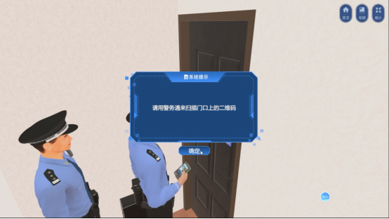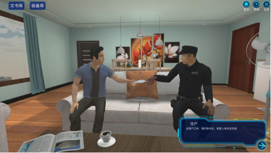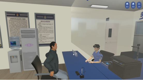 人口登記實驗:本實驗主要通過三維仿真技術對現(xiàn)實生活中的人口管理進行模擬,共分為常住人口登記、居住證申領、社區(qū)入戶訪查、社區(qū)巡邏及居民身份證查驗。實驗提供出生人口登記及居住證申領,學生通過對話引導辦理業(yè)務,根據(jù)系統(tǒng)提供材料是否齊全進行后續(xù);社區(qū)入戶訪查包含:任務簡介、警務通掃描二維碼、身份核查、填寫入戶走訪信息采集表;社區(qū)巡邏及居民身份證查驗包括:盤問可疑任務、學習實驗任務簡介、對可疑任務進行身份信息核查、根據(jù)實際情況進行填寫巡邏盤查登記表等。