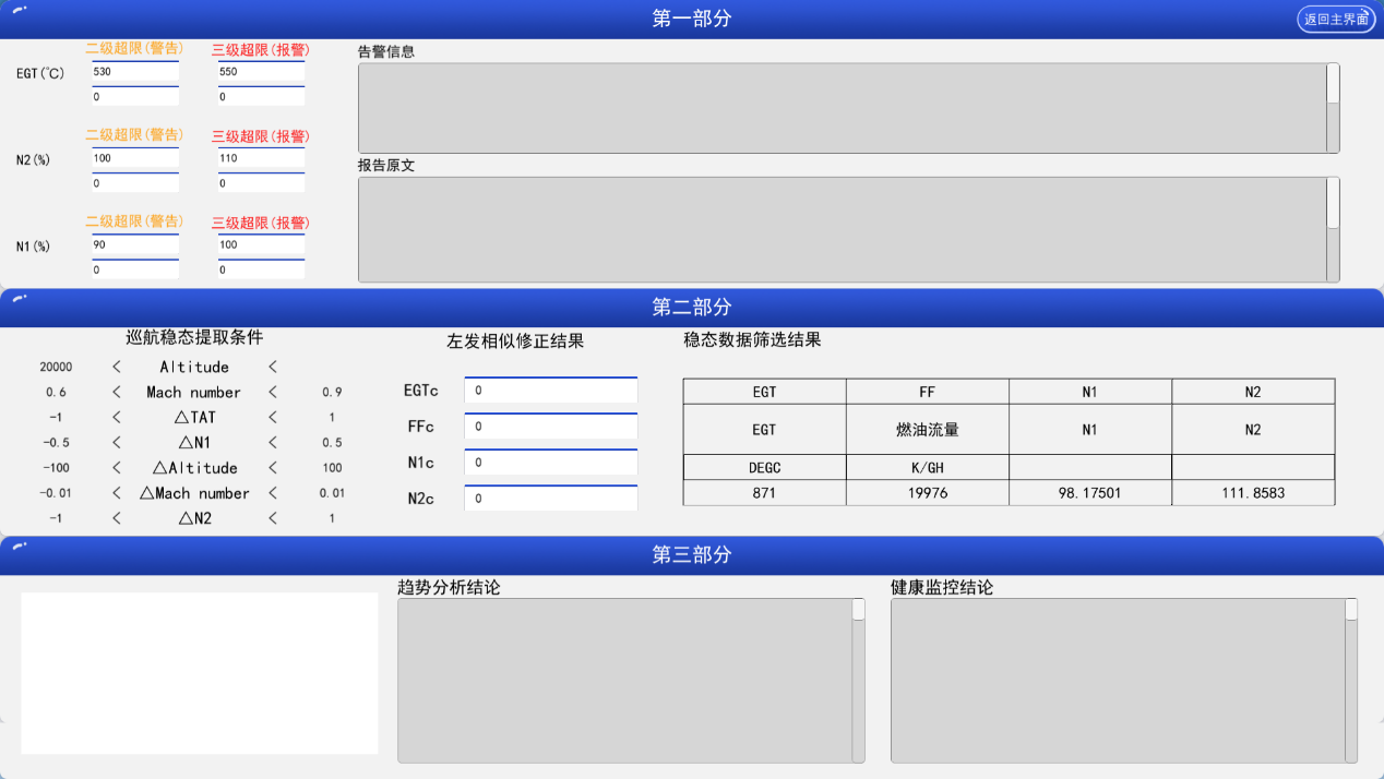 (2)民航發(fā)動機運行監(jiān)控及性能分析實驗分為:發(fā)動機監(jiān)控參數(shù)認識、發(fā)動機運行監(jiān)測、性能分析三部分。