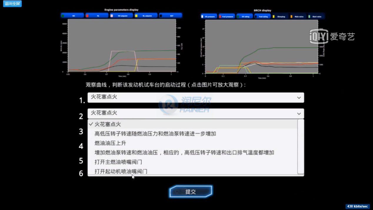 根據(jù)生成的曲線完成判斷發(fā)動機試車臺的啟動過程,點擊提交完成此模塊。