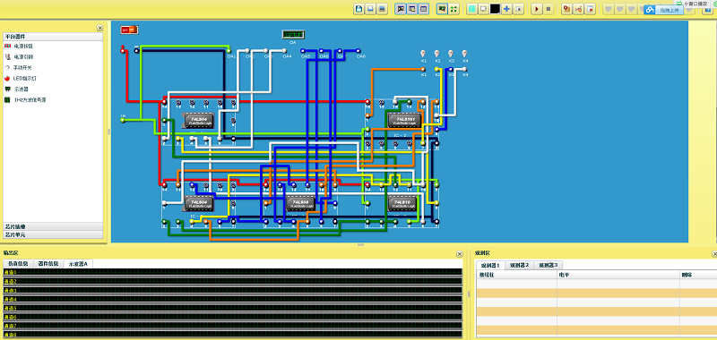電源引腳、手動開關(guān)、方波信號、單脈沖、電源按鈕、LED指示燈、譯碼顯示電路、示波器、芯片接插單元、標簽、
