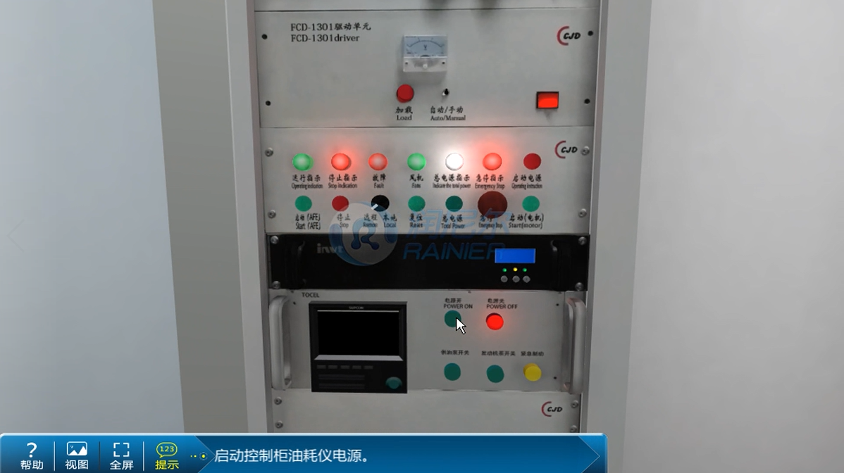 本實(shí)驗(yàn)可在虛擬三維實(shí)驗(yàn)室進(jìn)行漫游,進(jìn)行全方位的設(shè)備認(rèn)知。通過(guò)系統(tǒng)引導(dǎo)依次打開進(jìn)回水閥、回油閥、打開溫控裝置水路、打開強(qiáng)電弱電打開電腦啟動(dòng)耗油儀的供油泵和發(fā)動(dòng)機(jī)泵,在電腦上查看實(shí)驗(yàn)結(jié)果、關(guān)閉設(shè)備及強(qiáng)弱電等操作。