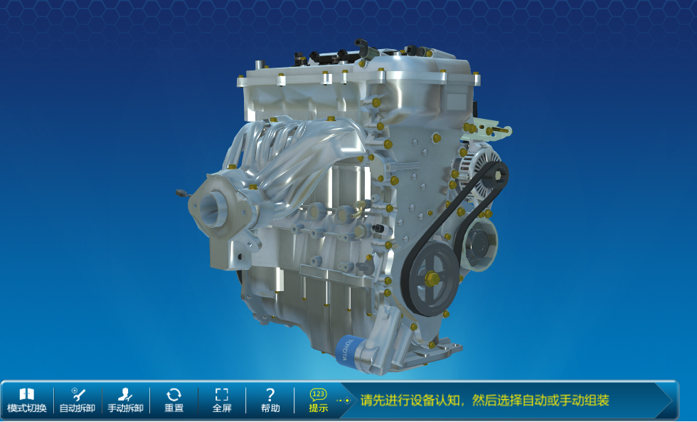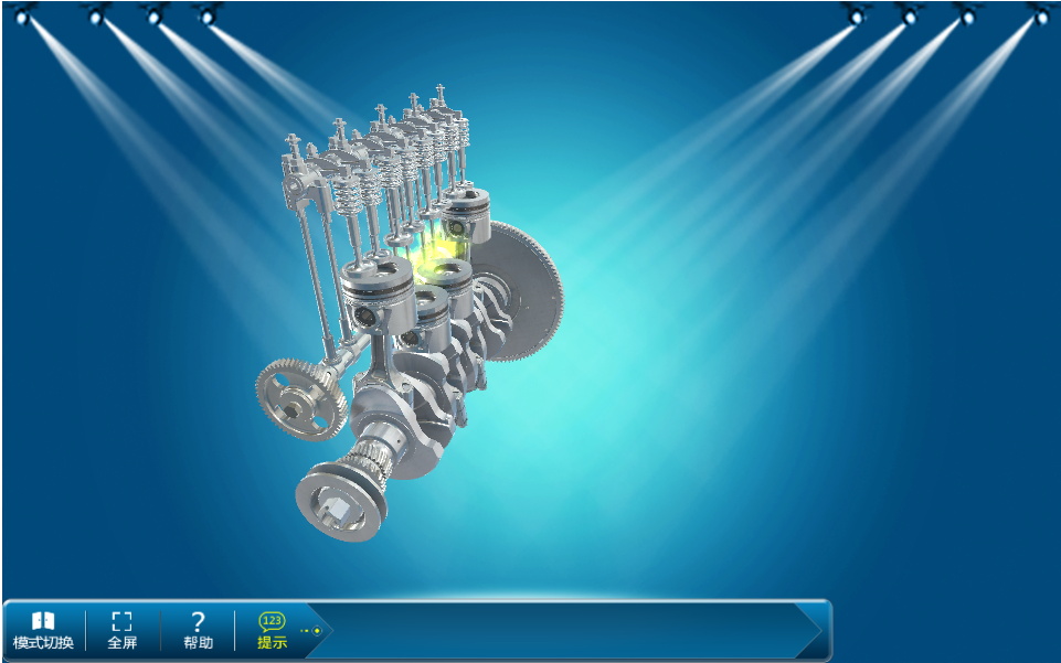 本實(shí)驗(yàn)可以360度觀看汽油發(fā)動(dòng)機(jī)三維模型,并可以查看曲柄連桿機(jī)構(gòu),水泵,機(jī)油泵等十幾個(gè)工作原理動(dòng)畫。在發(fā)動(dòng)機(jī)拆解與組裝裝模塊有自動(dòng)和手動(dòng)兩種形式