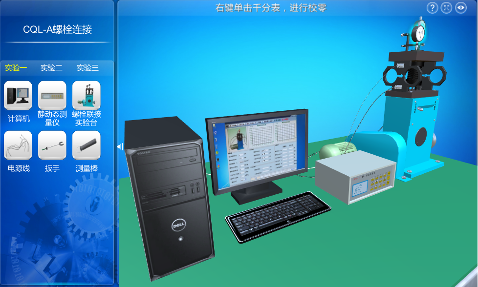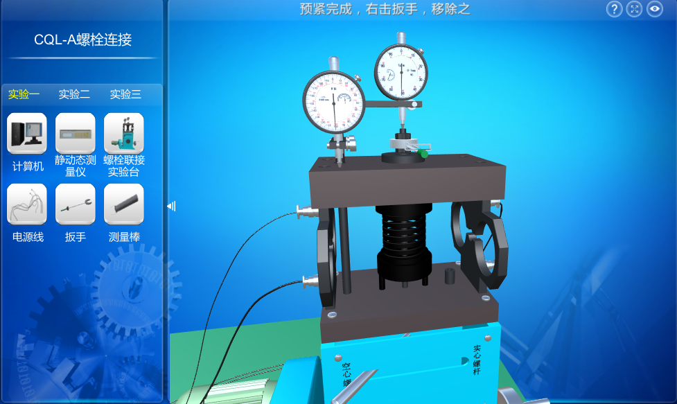 螺栓聯(lián)接實驗分3種模式,每種模式下軟件引導用戶完成螺栓預緊、變形值測量和記錄等操作。