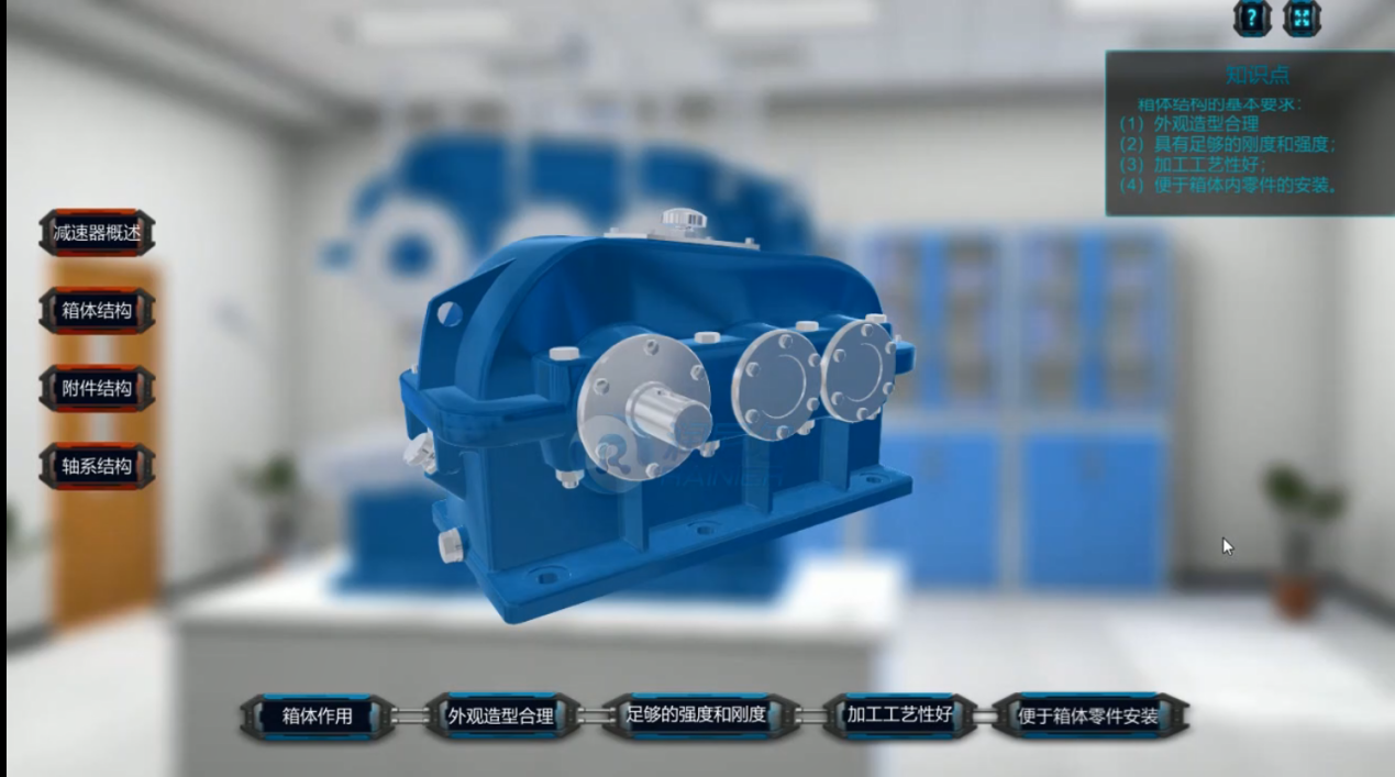 2、箱體介紹通過對箱體的3d模擬,學生可以通過360全角度扭轉(zhuǎn),對箱體結(jié)構(gòu)進行立體化觀察