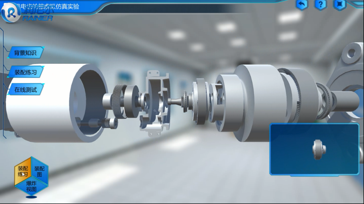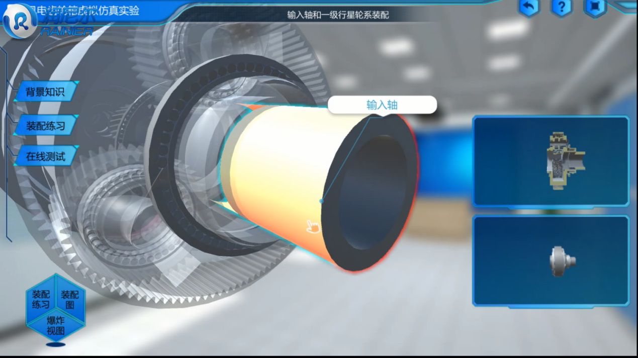 裝配練習可以對每一個零部件進行認識、識別,并且全方位觀察形狀并進行安裝操作的模擬觀察。