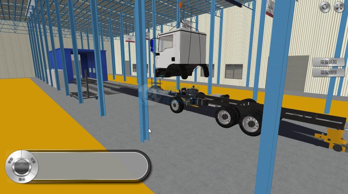 卡車裝配線虛擬實(shí)驗(yàn)?zāi)M東風(fēng)卡車裝配廠房內(nèi)部環(huán)境,包括:牽引車、壓縮空氣管道、吊裝系統(tǒng)、檢測室等三維模型,支持16個裝配工序的模擬操作。實(shí)驗(yàn)環(huán)節(jié)細(xì)致,模擬效果逼真。
