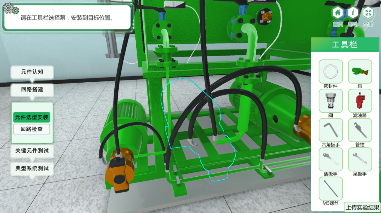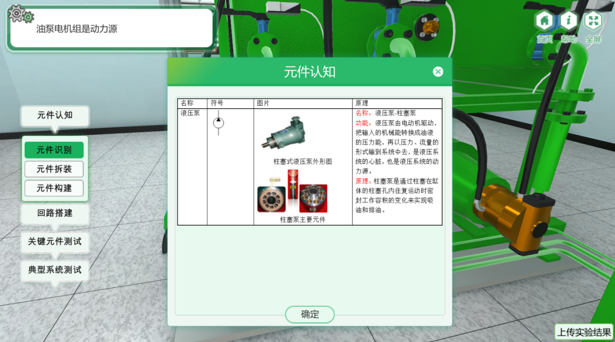 液壓元件與系統(tǒng)虛擬仿真實(shí)驗(yàn)軟件包括一個(gè)實(shí)驗(yàn)