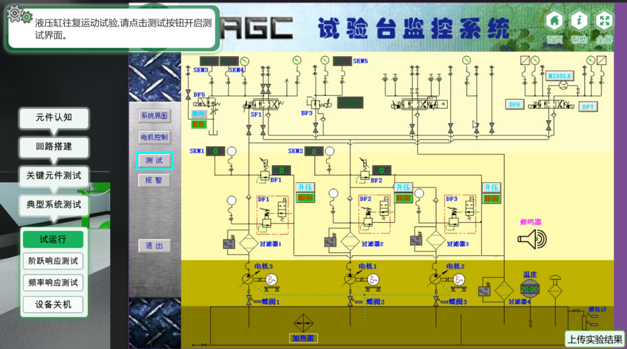按照文字提示和高亮提示對(duì)整個(gè)液壓測(cè)試系統(tǒng)進(jìn)行開(kāi)機(jī)準(zhǔn)備