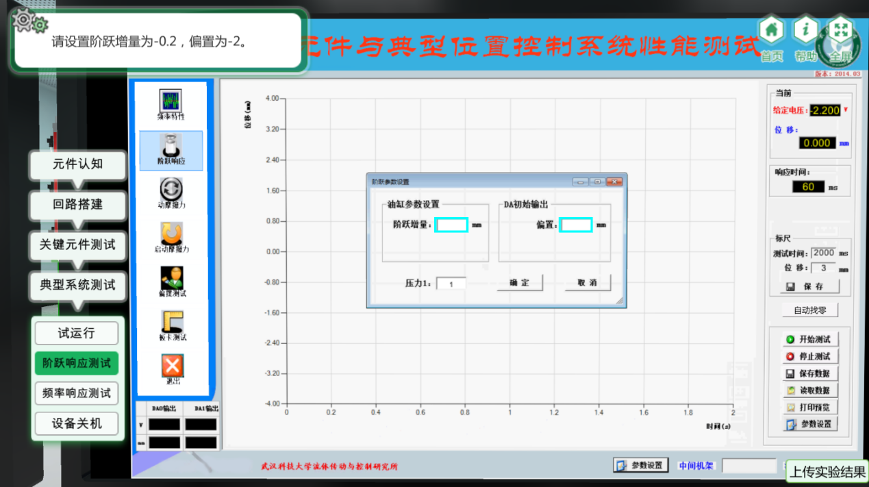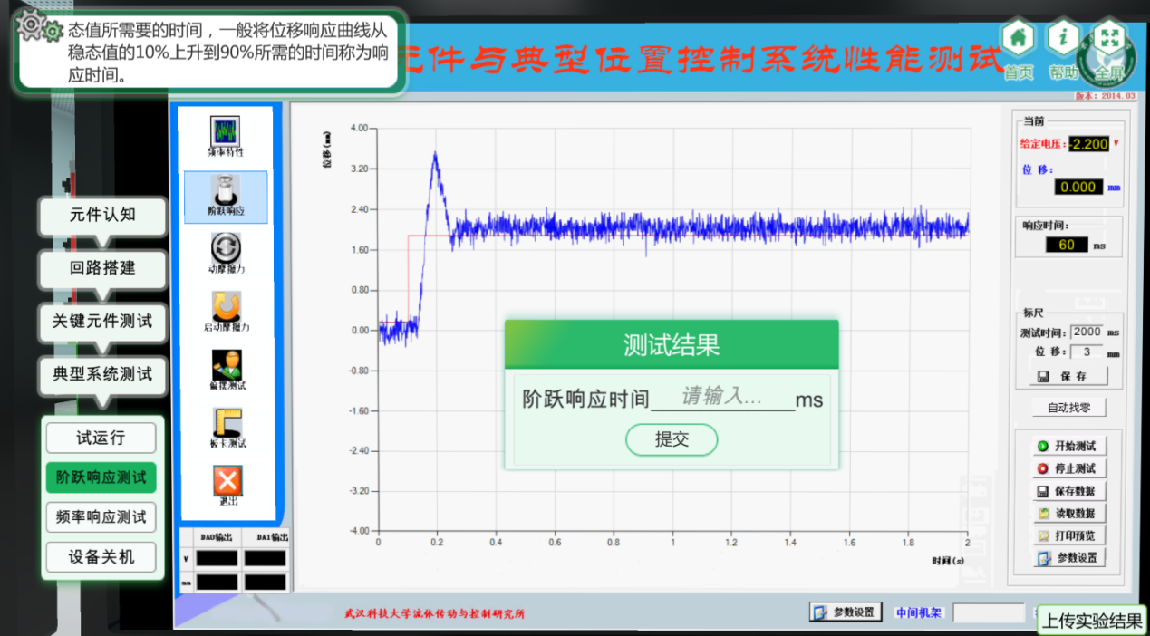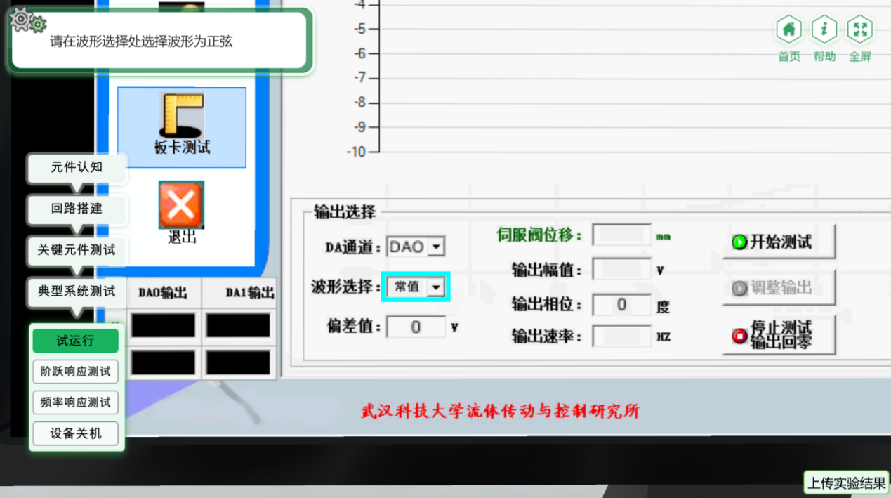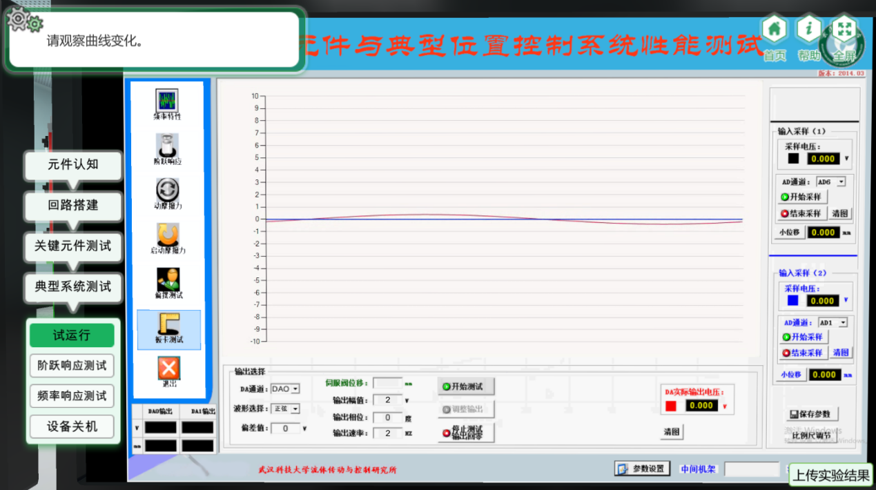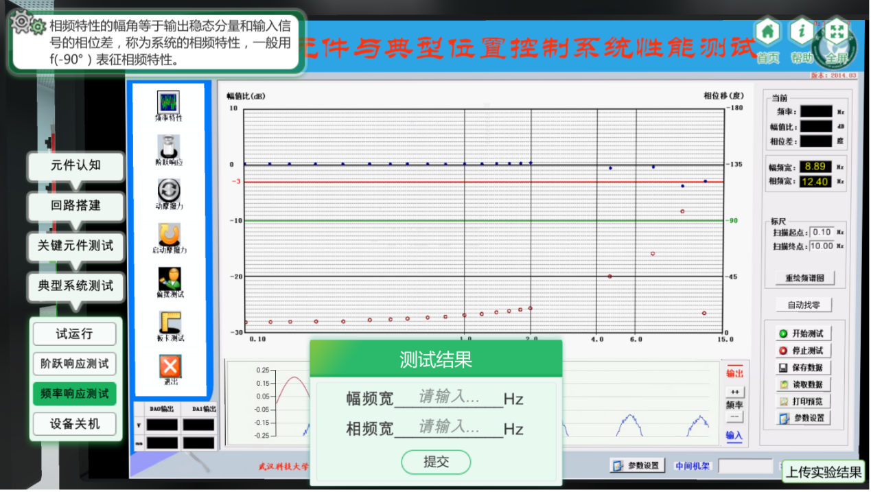 (4) 典型系統(tǒng)測(cè)試實(shí)驗(yàn)?zāi)K:包括試運(yùn)行、階躍相應(yīng)測(cè)試、頻率響應(yīng)測(cè)試、設(shè)備關(guān)機(jī)。