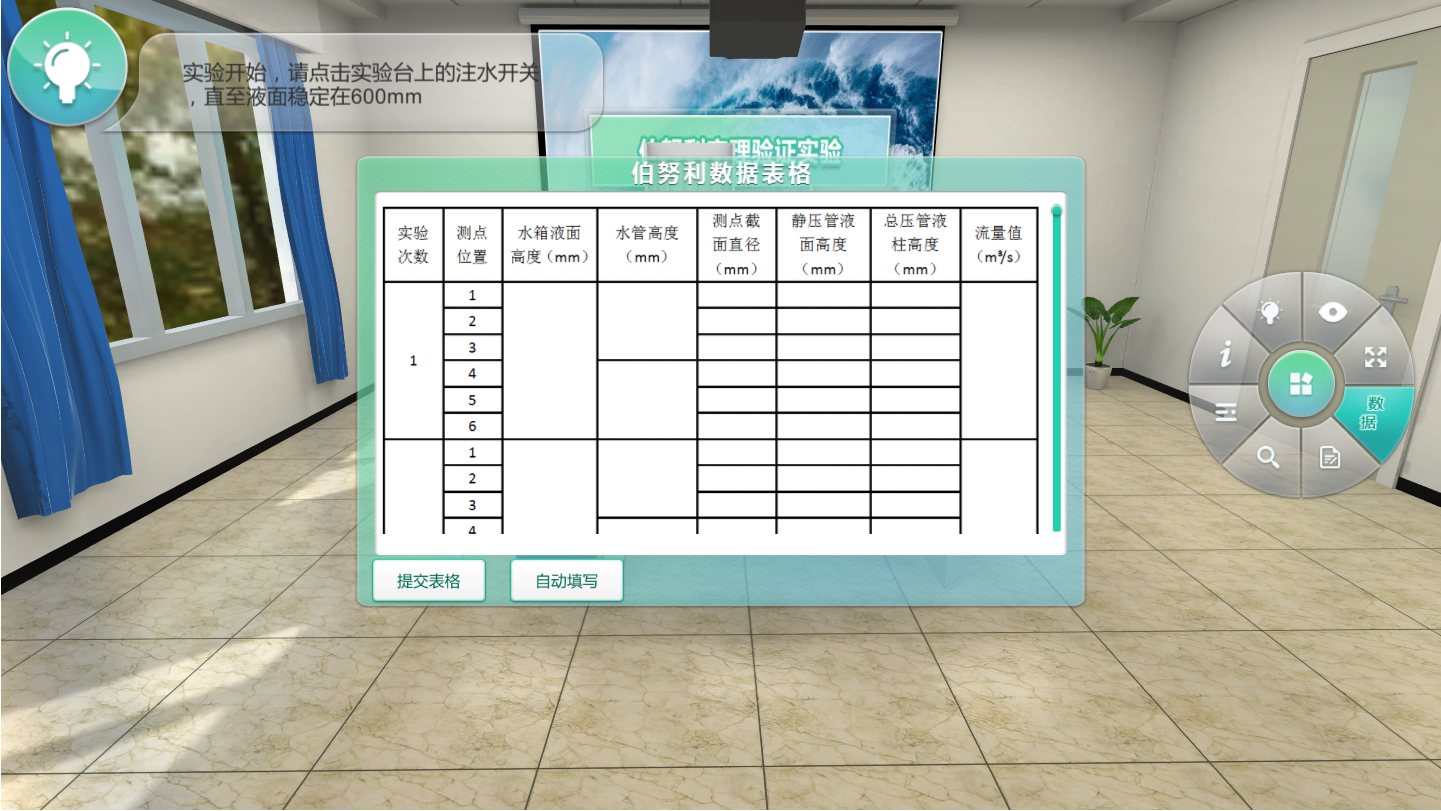 本虛擬實驗?zāi)M了伯努利定理驗證實驗的完整實驗流程,軟件提供實驗相關(guān)介紹、實驗習(xí)題訓(xùn)練、設(shè)備認(rèn)知、數(shù)據(jù)表格自動填寫等功能,幫助學(xué)生預(yù)習(xí)和復(fù)習(xí)鞏固伯努利定理驗證實驗的相關(guān)知識,加深實驗理解。
