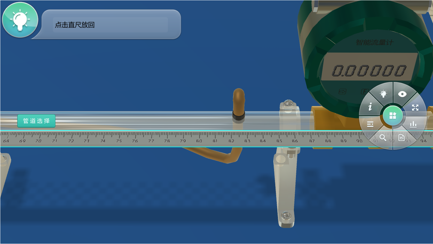 在三維實驗窗口中,系統(tǒng)提供工具欄,實驗過程中可以隨時收起/展開工具欄,同時工具欄在實驗過程中用戶可以隨時選用,提供視窗欄,便于用戶快速切換到對應(yīng)視角進(jìn)行操作或觀察實驗現(xiàn)象,提供操作提示和幫助,言簡意賅描述實驗操作步驟和方法,使易用性更強(qiáng)。