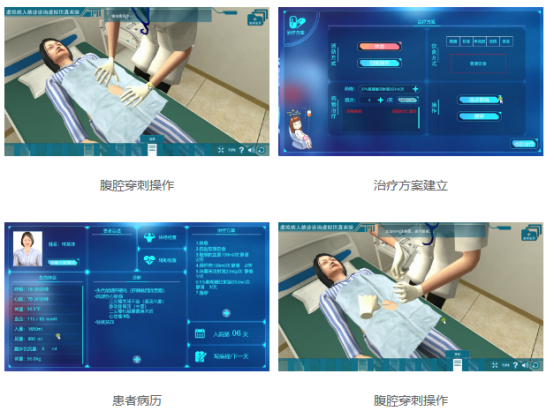 該虛擬仿真實(shí)驗(yàn)課程真實(shí)模擬了標(biāo)準(zhǔn)化病人在問診、體格檢查、輔助檢查、腹腔穿刺術(shù)、胸腔穿刺術(shù)、骨髓穿刺術(shù)、診斷、治療整個過程中臨床醫(yī)生的臨床思維訓(xùn)練。虛擬仿真實(shí)驗(yàn)結(jié)合相關(guān)理論知識,學(xué)生可以反復(fù)進(jìn)行實(shí)驗(yàn)和學(xué)習(xí),從而提高學(xué)生理論水平和實(shí)踐能力,節(jié)省大量教學(xué)資源和時間。