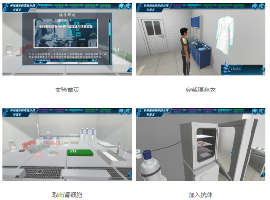 實(shí)驗(yàn)三維模擬了完整的生物安全實(shí)驗(yàn)室場景,共包括標(biāo)本采集、實(shí)驗(yàn)前準(zhǔn)備、細(xì)胞傳代、HSV的分離培養(yǎng)、HSV的分型鑒定五個實(shí)驗(yàn)流程,學(xué)生在實(shí)驗(yàn)操作的過程中,可以熟悉完整的實(shí)驗(yàn)流程,掌握儀器設(shè)備的操作方法,掌握相關(guān)試劑的使用和操作規(guī)范,從而對實(shí)驗(yàn)形成完整形象的認(rèn)知,為以后實(shí)驗(yàn)實(shí)操打下相應(yīng)的基礎(chǔ)。