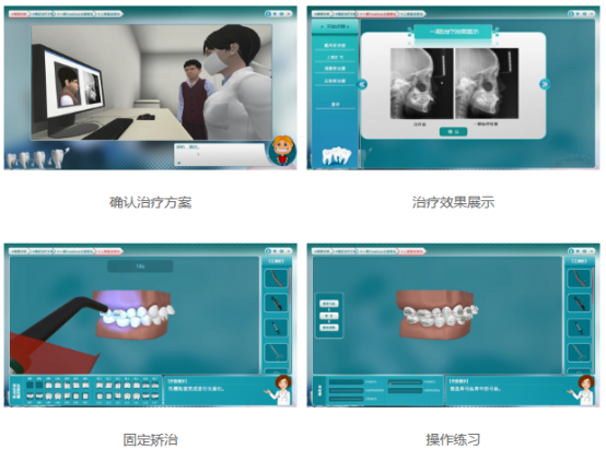 通過三維仿真技術(shù),還原一個突面型青少年正畸治療的全過程,包括醫(yī)患對話、特征識別、選擇治療方案、選擇“戴用TwinBlock矯治器”、托槽粘結(jié)等實(shí)驗(yàn)環(huán)節(jié),學(xué)習(xí)者通過該項(xiàng)目,不僅對正畸型治療的流程有全面的熟悉,而且還能熟練掌握上頜擴(kuò)弓、調(diào)磨矯治器等具體知識技能運(yùn)用。