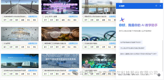 面對虛擬仿真平臺的使用,AI能夠精準(zhǔn)捕捉并分析用戶的操作習(xí)慣,從而能夠即時(shí)提供個(gè)性化的教學(xué)輔導(dǎo),從如何登錄平臺到如何課程管理、開課管理等每一步都有AI的貼心陪伴,讓教師教學(xué)管理之路暢通無阻。